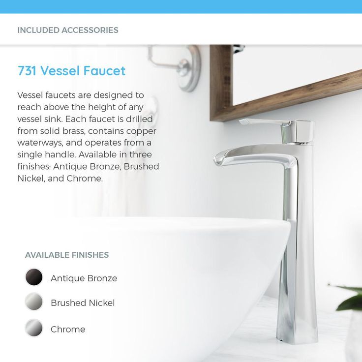 • Ensemble includes: vessel sink, vessel faucet and pop-up drain