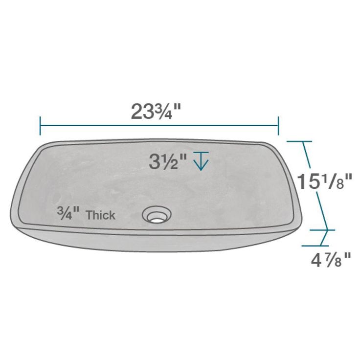 This hand-honed limestone vessel is a rare find in the sink industry. Its 3/4 in. thick, deep gray-coloring is buffed to a smooth, durable, matte finish. Though generally rectangular in shape, the slow curves at each end create a shallow, u-shaped profile when viewed from the front. With an overall measurement of 23-3/4 in. x 15-1/8 in. x 4-7/8 in., it will require a minimum-width cabinet of 24 in. This listing does not include any accessories.