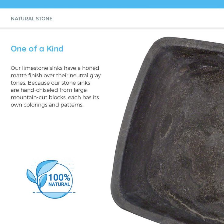 • Natural styling - a flat-bottomed, rectangular basin of limestone with graceful rounded corners