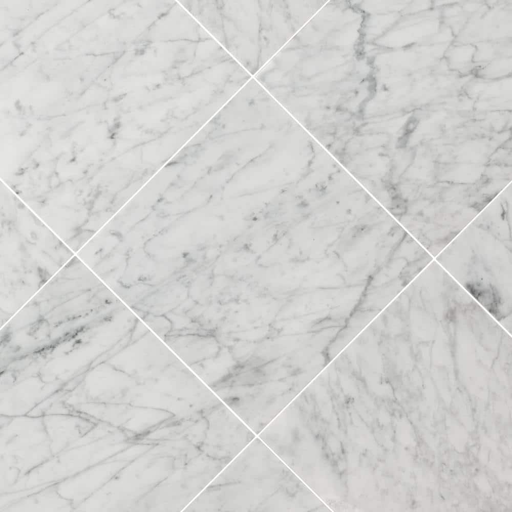 Classic Bianco Carrara marble tile brings timeless elegance to floors, walls, and backsplashes. The polished 12 x 12 format suits bathrooms, kitchens, and showers, offering durable natural stone with grey veining and high sheen.