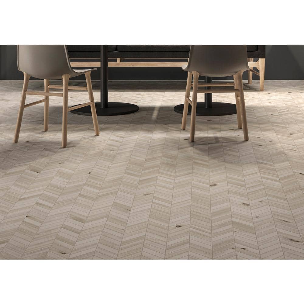 Transform your space with the Havenwood Dove Chevron Porcelain Mosaic Tile, perfect for adding a sophisticated touch to any room. This elegant tile features a chevron pattern with soft beige wood-look tones, ideal for both innovative backsplashes and charming shower walls. Designed for durability, its matte finish and porcelain composition ensure lasting beauty, whether indoors or out.