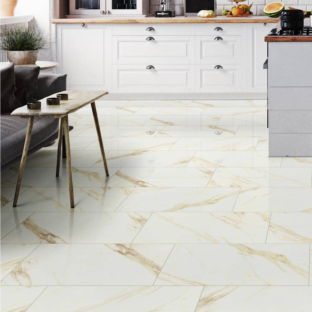 Elevate floors and walls with MSI’s Yosemite White polished porcelain tile, featuring a crisp white marble-look with warm gold veining. Durable, waterproof, and easy to maintain, each case covers 14.2 sq. ft.—ideal for residential and commercial spaces.