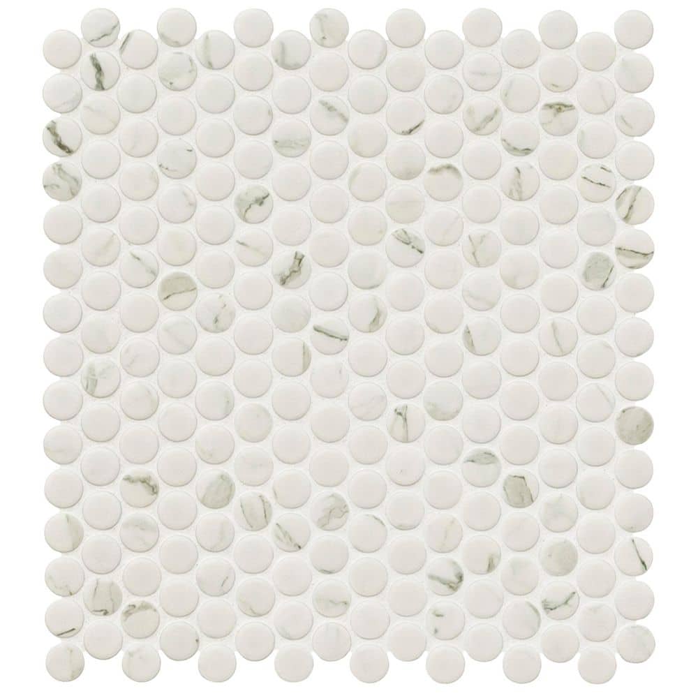 Carrara Penny Round 12 in. x 12 in. x 6mm Matte Porcelain Mesh-Mounted Mosaic Tile (14.4 sq. ft./Case)