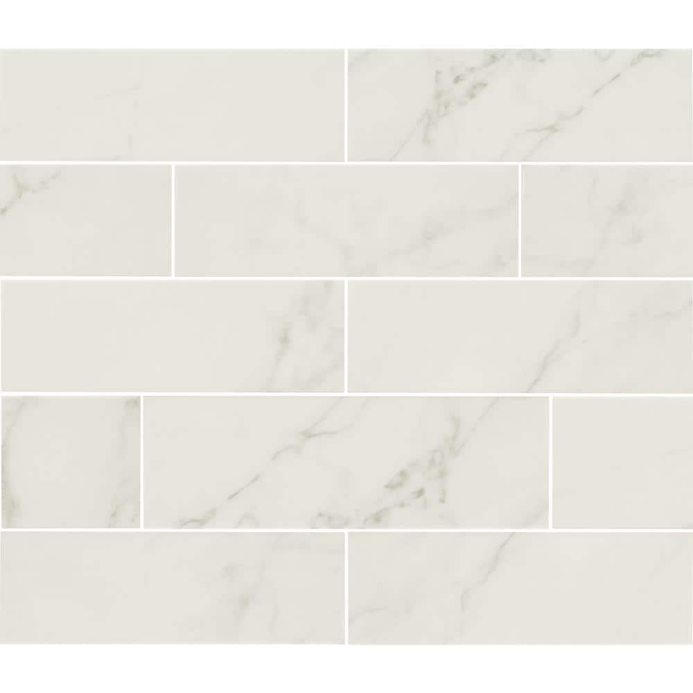 MSI’s Kalypso Monet ceramic subway tile brings a refined marble-look to indoor walls and backsplashes. The 4x12 glossy tile features soft white tones with delicate gray veining and offers water-resistant, easy-care performance—ideal for kitchens, baths, and accent walls.