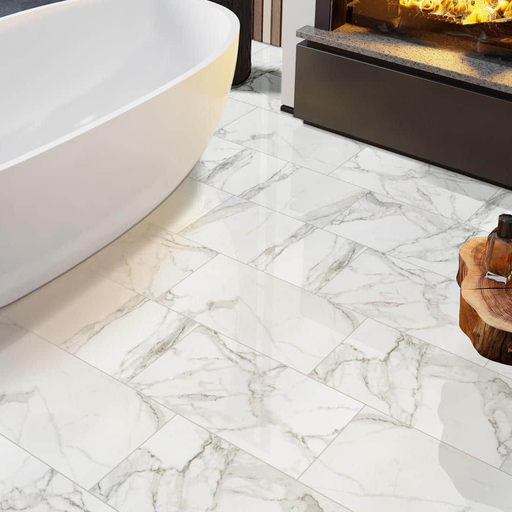 MSI Crystal Bianco 12 in. x 24 in. Polished Porcelain Floor and Wall Tile (16 sq. ft. /Case)