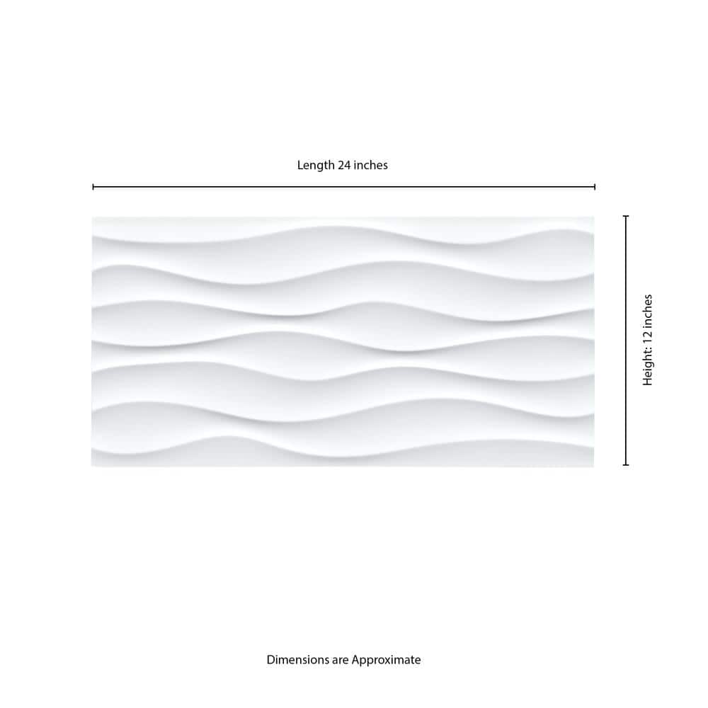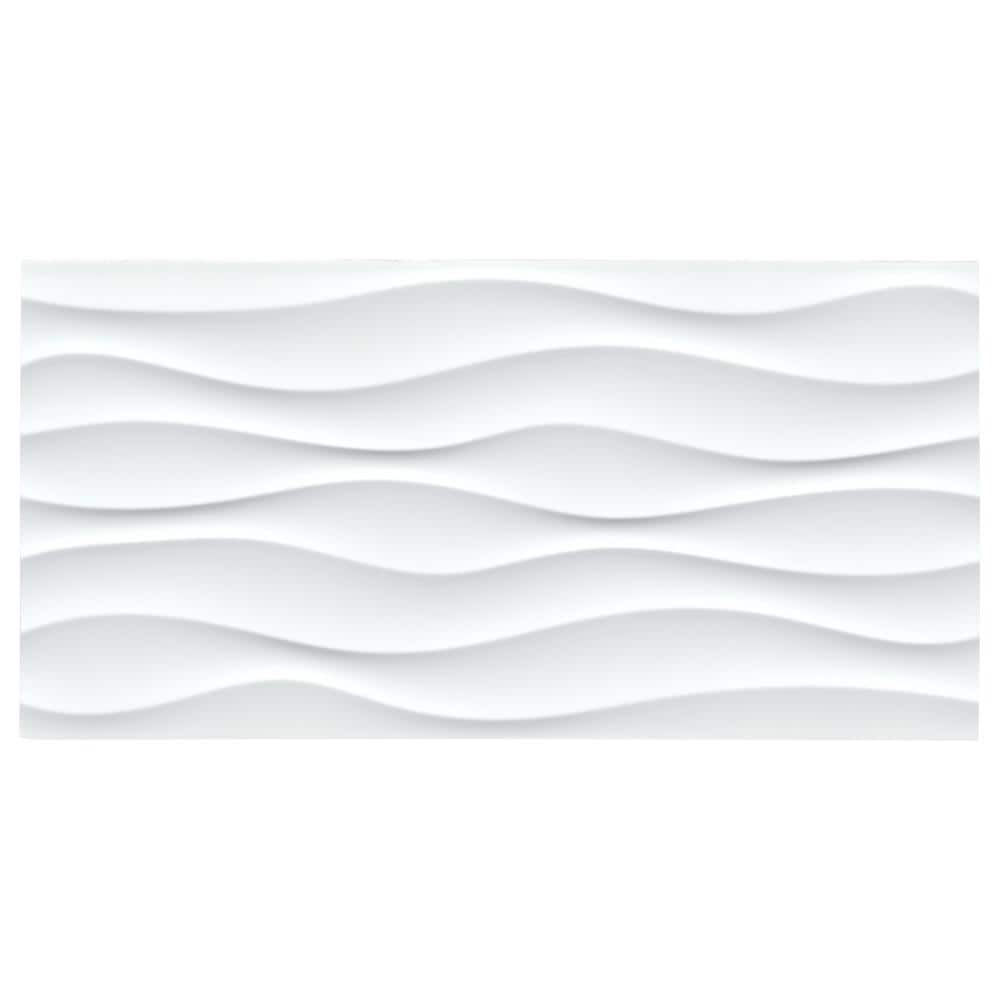 Dymo Wavy White Glossy Ceramic Wall Tile, 12x24
