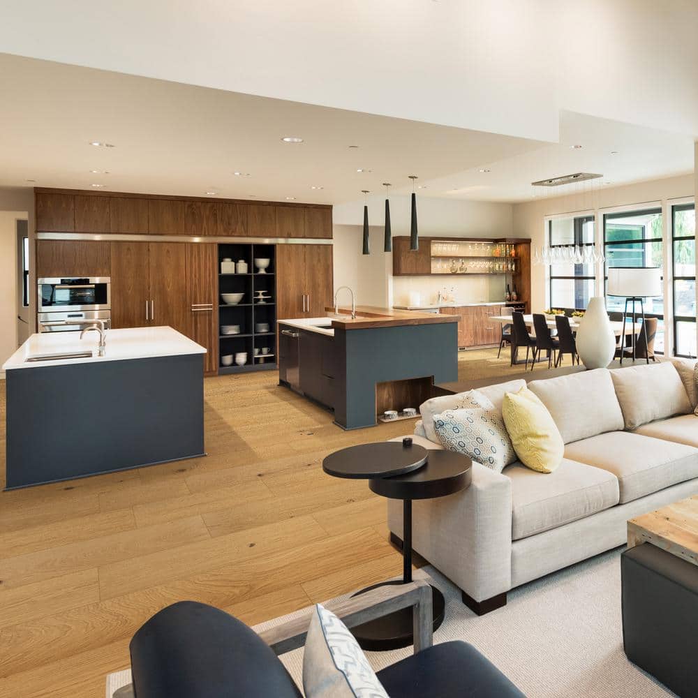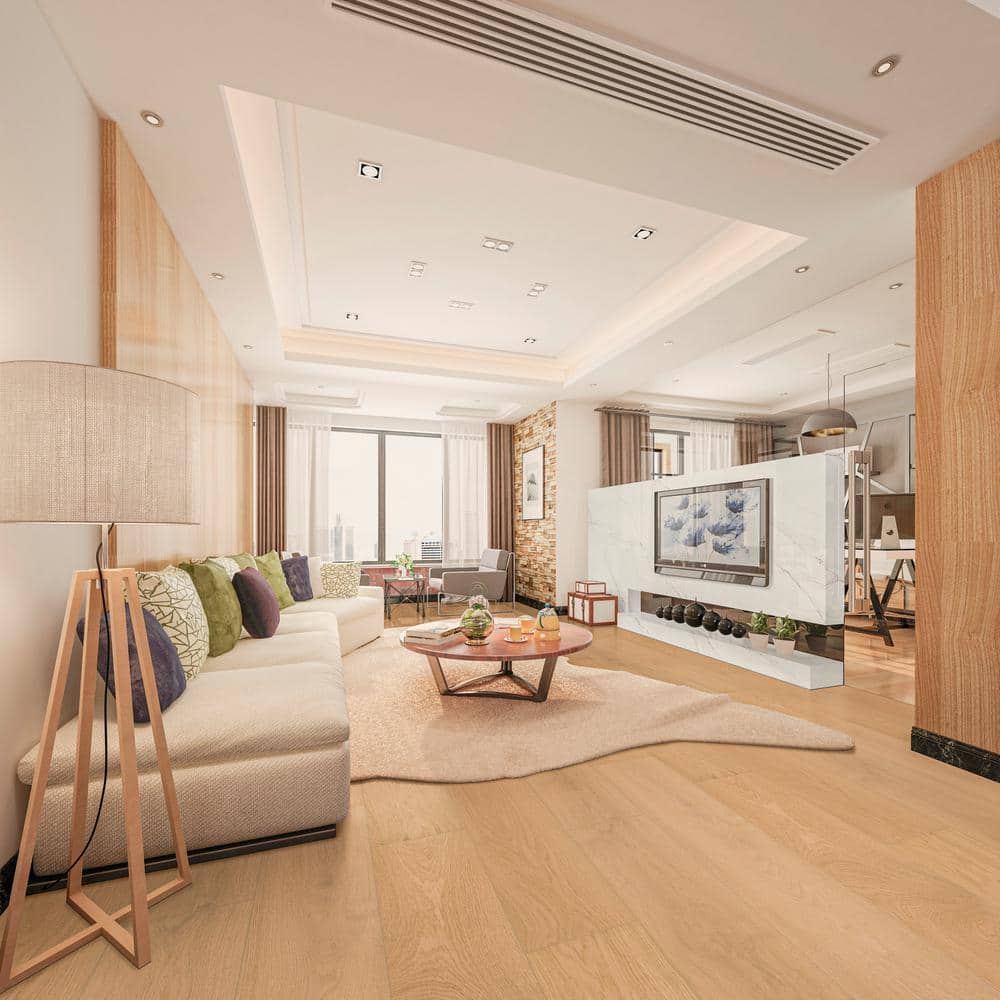 • High-End Aesthetic: European white oak planks with a subtle beige tone and darker grain patterns enhance any decor style.