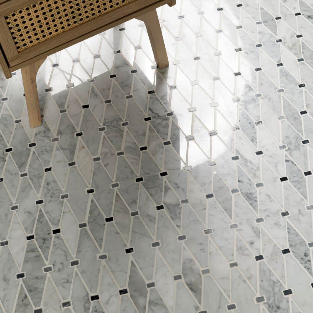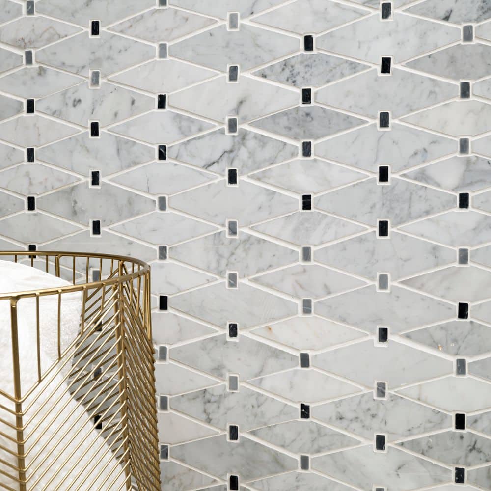 Elevate your space with Marbella Diamond—add this polished marble mosaic to your cart and create a standout surface with ease.