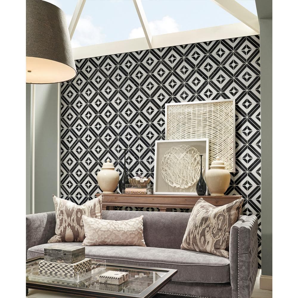 Transform your space with the MSI Rhombix Nero Mosaic Tile. Featuring an elegant black and white diamond pattern, this polished marble tile is perfect for creating stunning accent walls, kitchen backsplashes, or enhancing your bathroom design. With its Greenguard Indoor Air Quality Certification, you can achieve a professional and environmentally-friendly installation.