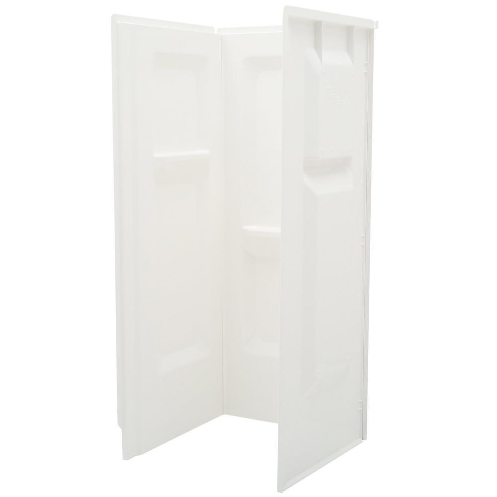 The MUSTEE Durawall 32 in. x 32 in. x 73-1/4 in. 3-piece Shower Wall features a white glossy finish to complement all bathroom decorating schemes. The surface is resistant to mold and mildew for easy cleaning and maintaining. The wall set features a tongue and groove connection that creates a seamless and caukless installation.