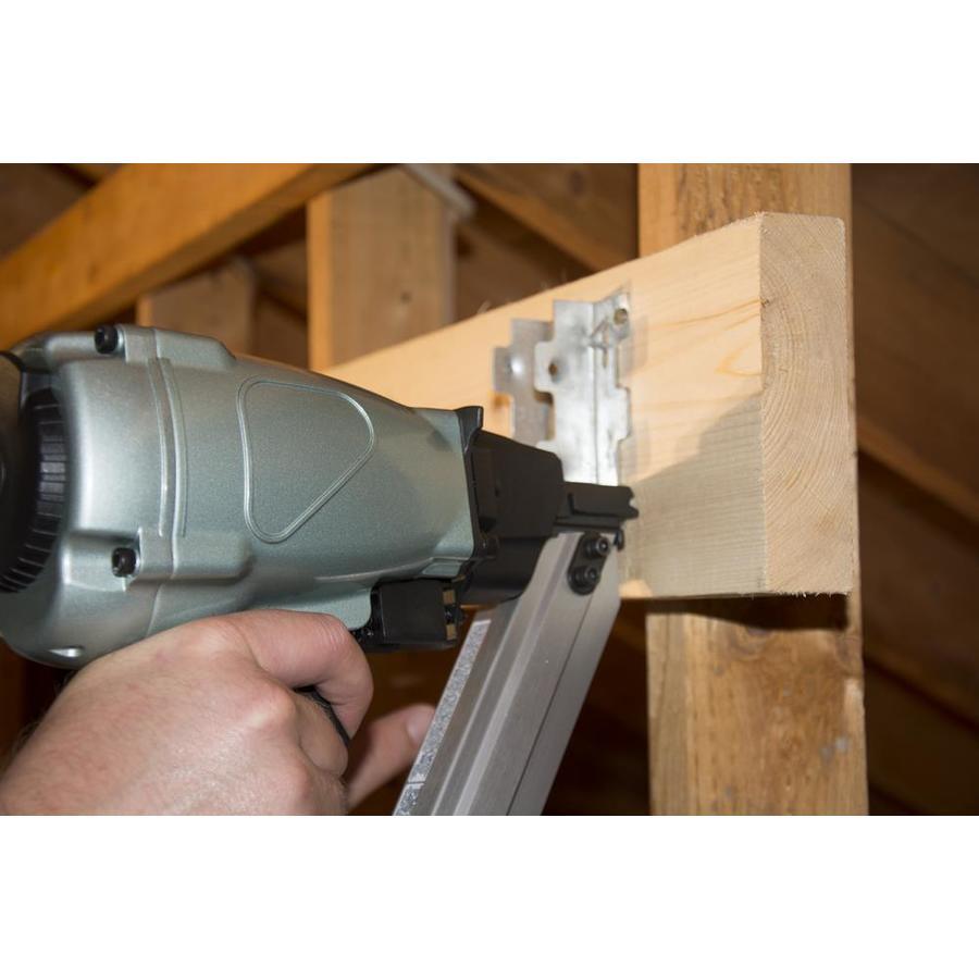 APPLICATIONS: For fastening various types of pre-punched hole metal connectors to wood LIGHTWEIGHT: Well balanced at just 4.6 lbs. for excellent maneuverability FASTENERS: Accepts 1-1/2 In. fasteners TRIGGER: Sequential drive mechanism ensures precision nail placement DRY FIRE LOCKOUT: Dry fire lockout prevents the nailer from firing with no nails POSITIVE SAFETY: Positive safety allows the tool to use the nail as a guide without damaging the collation GRIP: Rubber grip provides comfort and ensures a secure grip AIR DEFLECTOR: Adjustable air deflector directs the air exhaust in any direction NARROW DESIGN: Allows for ease of use in tight spaces