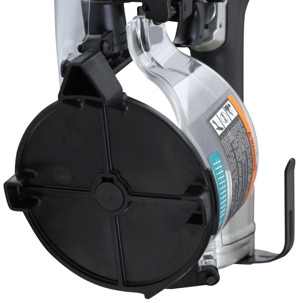 The Makita 2-1/2 in. Siding Coil Nailer combines rugged construction with ease-of-use features for improved performance. The Makita 2-1/2 in. Siding Coil Nailer accepts 1-1/4 in. to 2-1/2 in. nails (.080 - .099 shank diameter) with a 300-400 magazine capacity and an easy-loading canister with nail size adjustment. The Makita 2-1/2 in. Siding Coil Nailer has a 3-mode selector switch (contact, sequential, lock) that is engineered for increased user control and convenience. Additional features include a "tool-less" depth adjustment with 9 depth settings and sharp spurs that grip the wood for increased control at an angle.