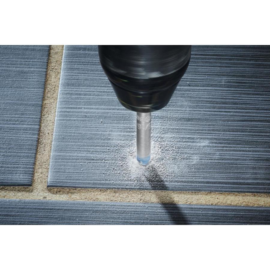 Multigrind head – designed with multiple cutting edges for harder tile materials Fast drilling in hard materials – delivers 20 percent faster drilling than glass and tile bit Specialized carbide tip – centers for no-skate drilling and greater ease of use High-quality carbide material – provides longer life in hard materials Three flat shank on 3/8 In. bits and above – offers outstanding bit grip to avoid slippage Engineered for use in natural stone tile, slate, granite and other specialty tile materials (specialty tiles that may be harder than normal tile) Not recommended for use on porcelain tiles Also compatible with hammer drills