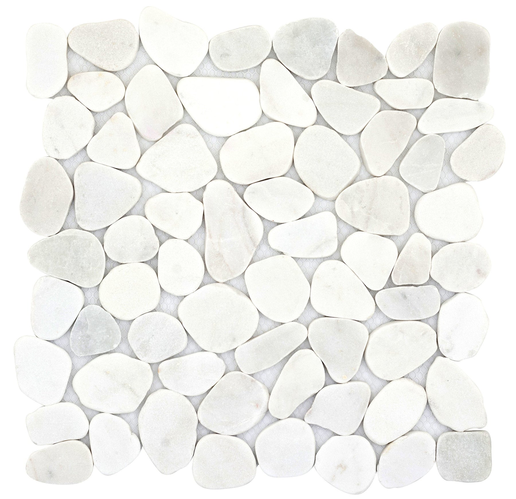 Cultura by Emser features honed natural stone pebbles set on 12x12-in interlocking mesh sheets for seamless installation. The durable mosaic is rated for floors, walls, showers, pools, and exterior applications, bringing organic texture and grip to wet areas.