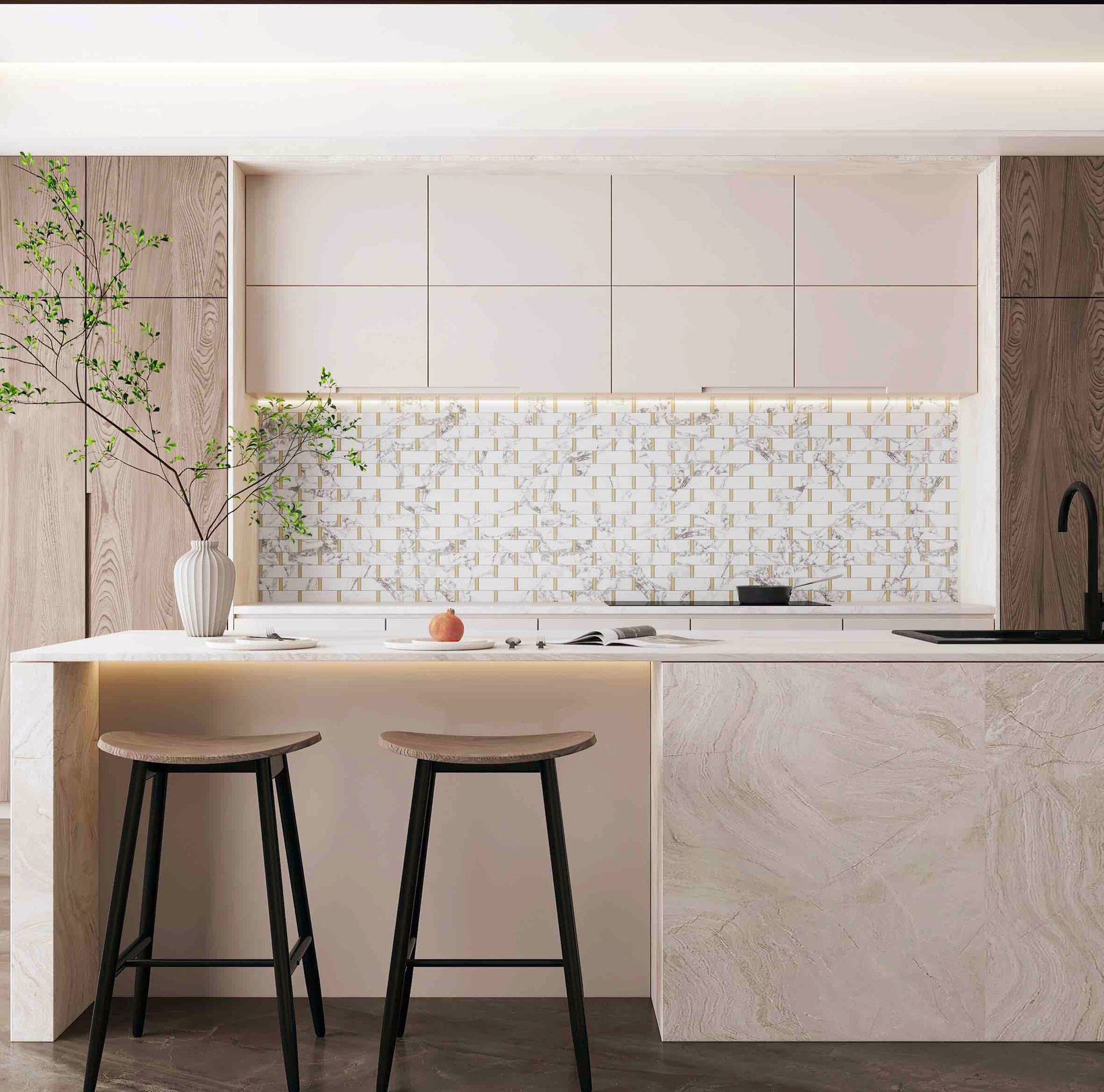 Imagine a space that radiates opulence, where Giorbello's Marble Look Tile becomes the jewel in the crown. The interplay of white marble and gleaming gold accents creates a tableau of timeless sophistication. Utilize these tiles to transform lackluster walls into captivating statement pieces, infusing a whisper of luxury into every room. Let the tiles' reflective beauty and sleek lines bring an aura of grandeur to kitchens, baths, and beyond, establishing a foundation for exquisite living.