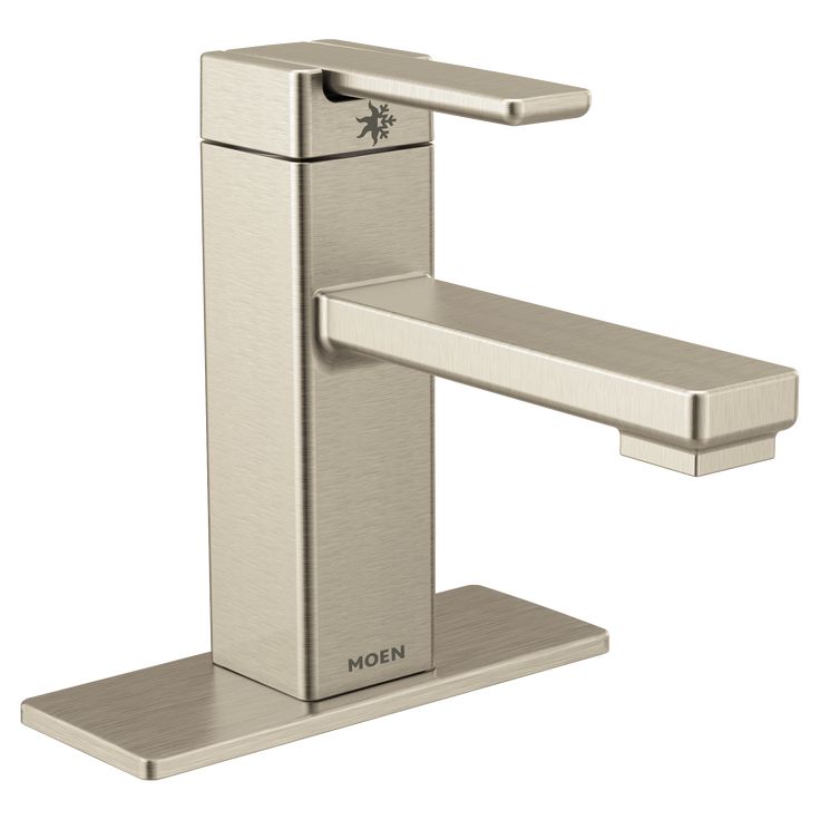 Moen 90 Degree Brushed Nickel 1-handle Single Hole WaterSense Bathroom Sink Faucet with Drain