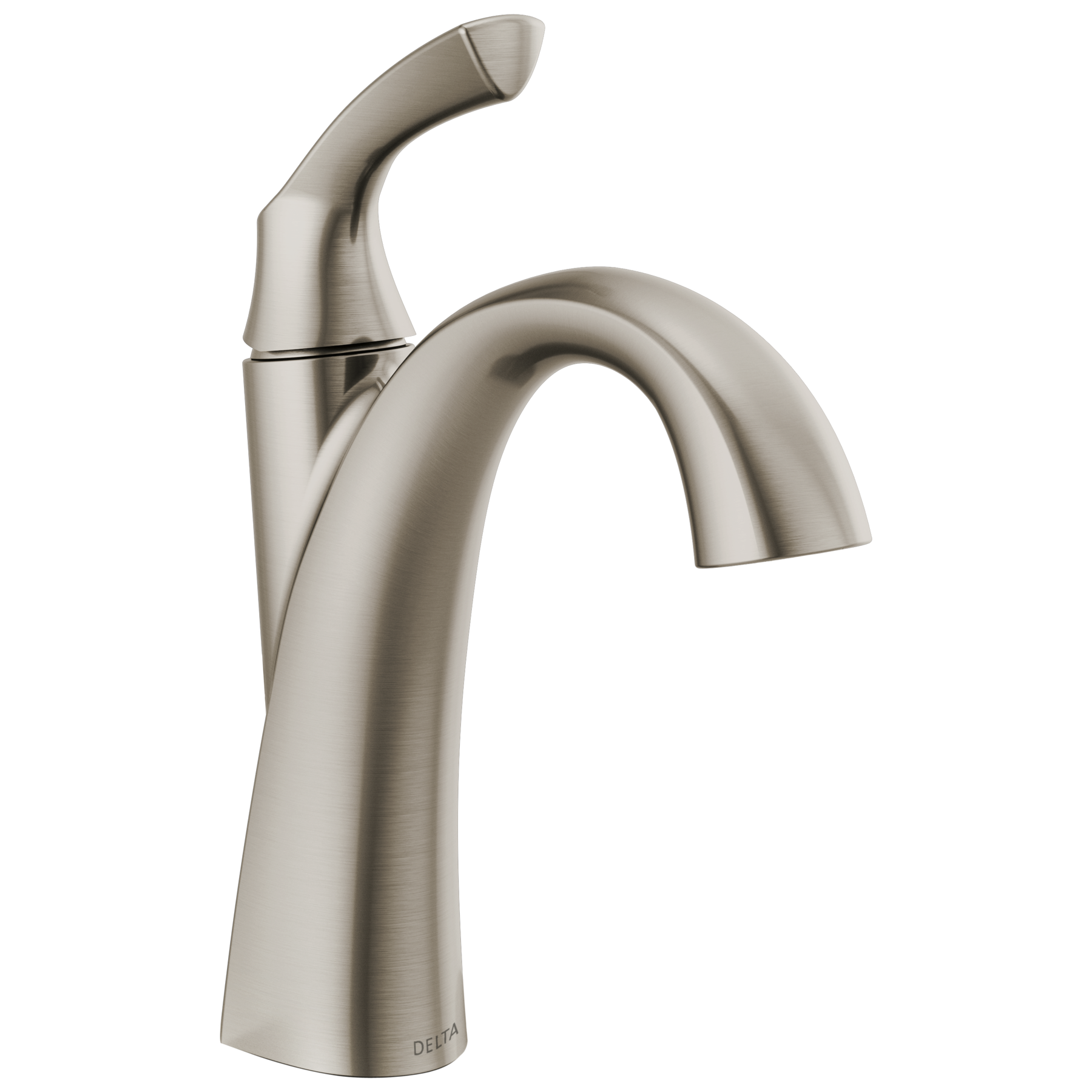 The Delta Sandover bathroom faucet pairs tapered curves with SpotShield Brushed Nickel to resist water spots and fingerprints. Designed for single-hole or 3-hole installations, it features WaterSense efficiency and an easy-to-clean push pop-up drain for reliable, everyday performance.