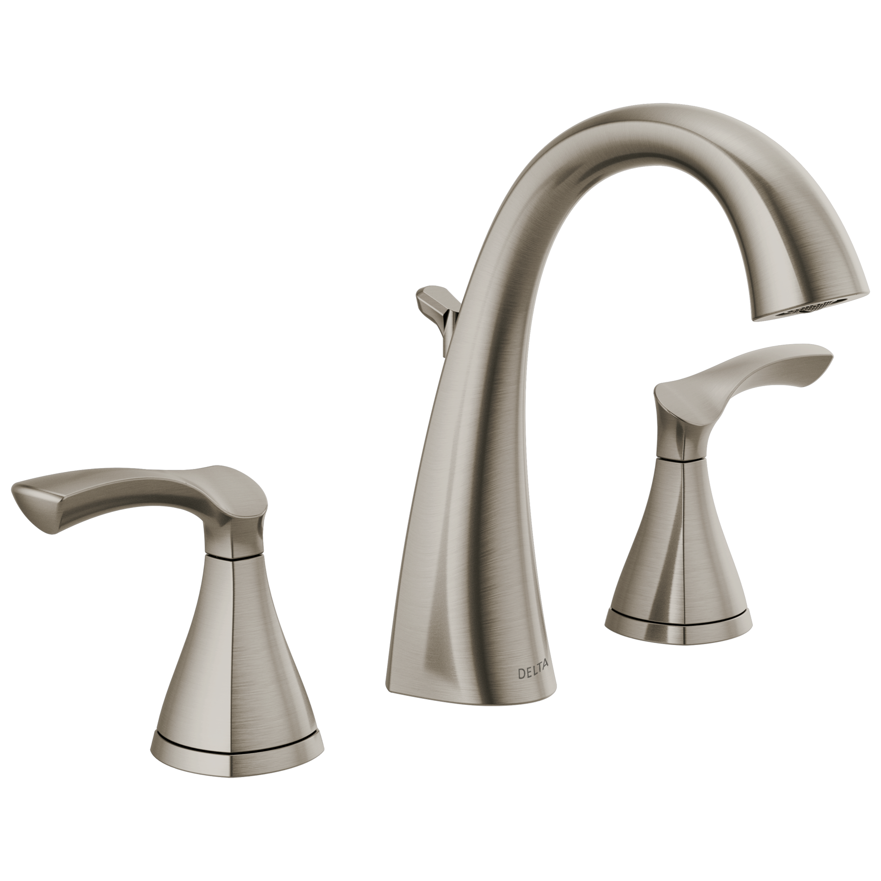 Delta Sandover SpotShield Brushed Nickel 2‑Handle Widespread WaterSense Bathroom Sink Faucet with Drain, 35748LF-SP