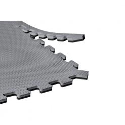 These Norsk EVA foam tiles create cushioned, reversible flooring in gray/black for gyms, playrooms, and workshops. Each 24 in. x 24 in. tile is 0.51 in. thick with an anti-slip texture and puzzle-edge design for fast, tool-free installation.