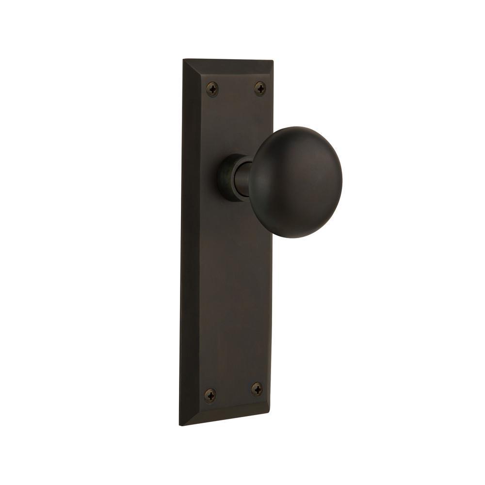 New York Plate 2-3/8 in. Backset Oil-Rubbed Bronze Passage Hall/Closet New York Door Knob