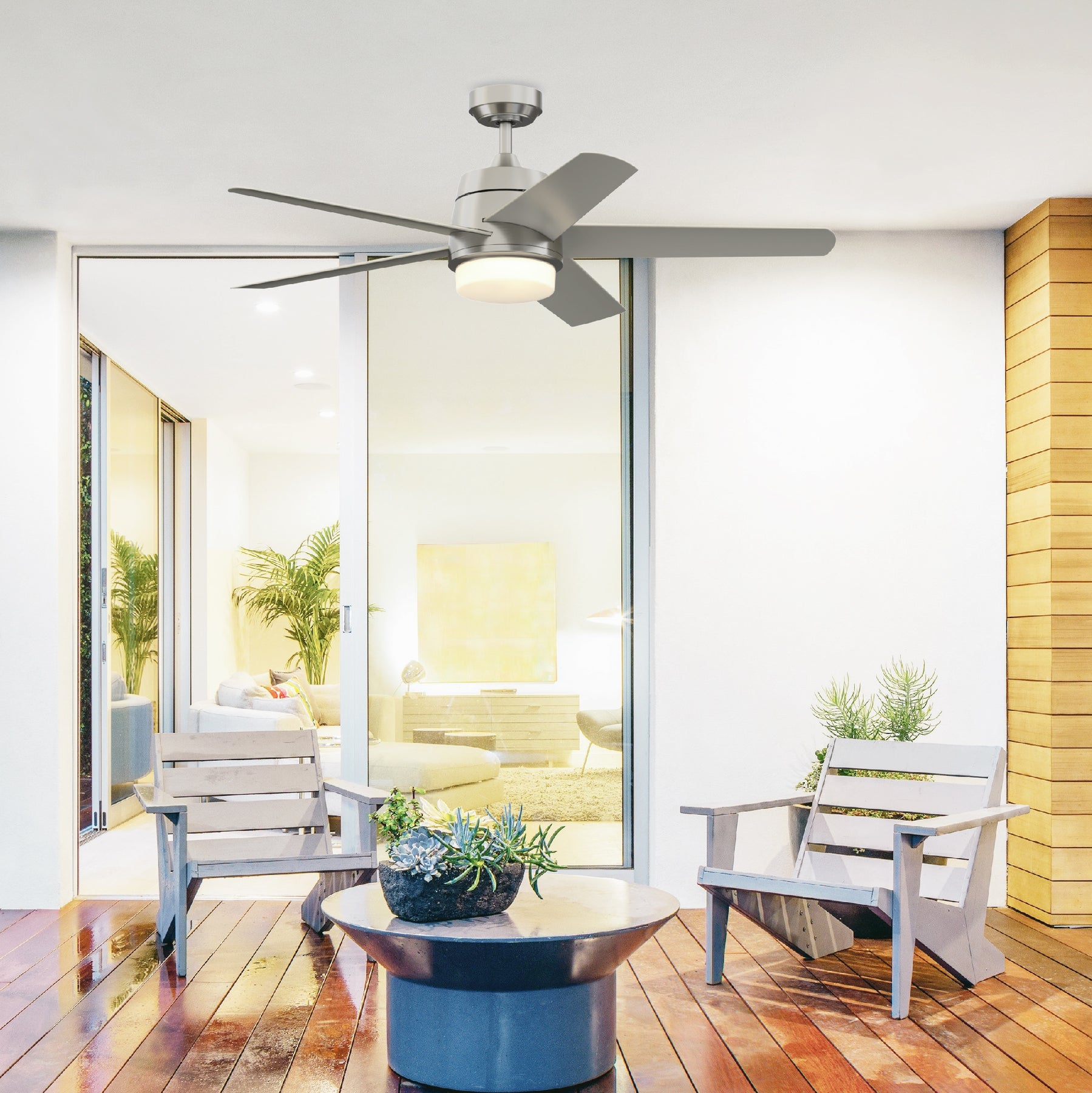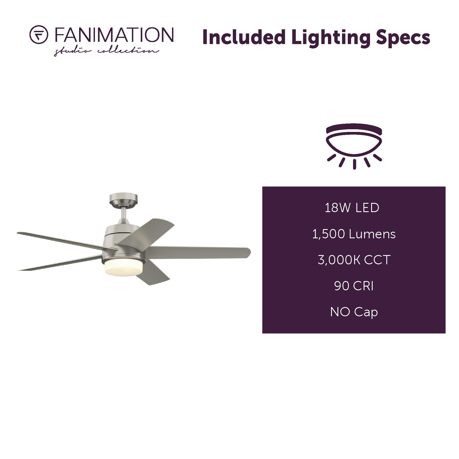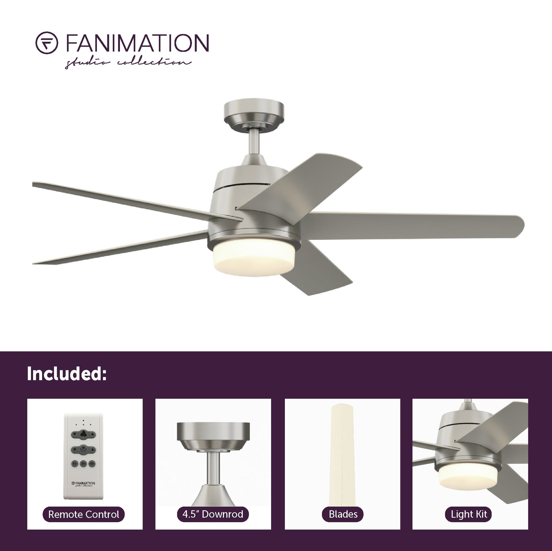 Fanimation Studio Collection Berlin 52-in Brushed Nickel LED Indoor/Outdoor Ceiling Fan with Remote (5-Blade)