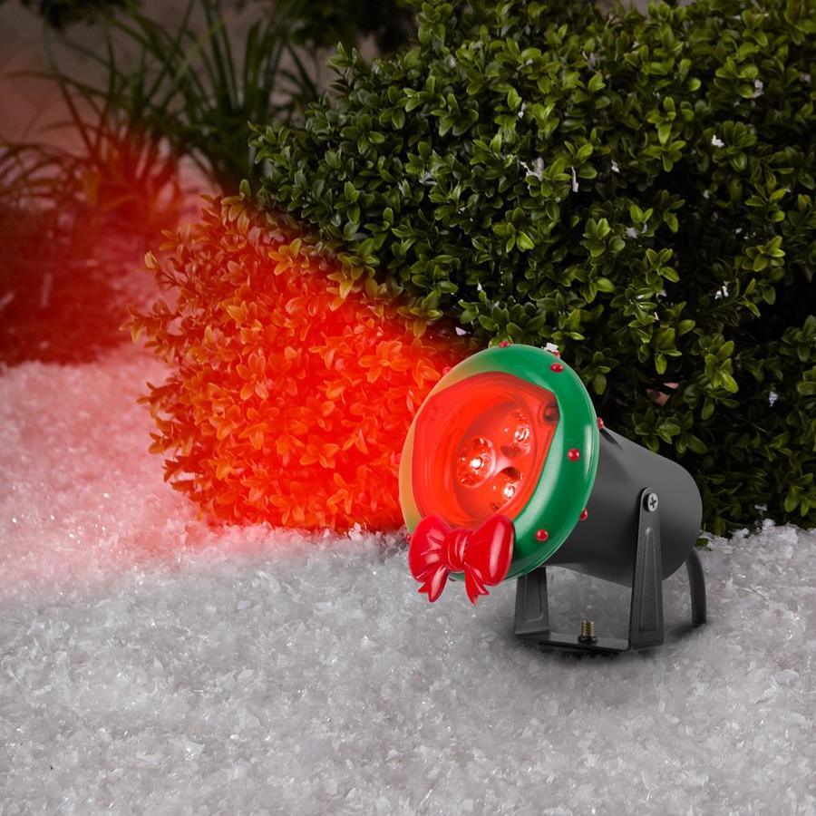 Creates a steady glow of vibrant colorprojects up to 10 ft of coverage Creates magical holiday lighting instantlystakes easily into the ground Projects onto exterior or interior walls, living spaces, front doors, porches, garage doors, fences, trees and shrubs Features bright, energy-efficient LED Christmas lights Projects up to 6 ft wide Projector features a decorative holiday casing Stakes easily into the ground Christmas lighting for indoor or outdoor use