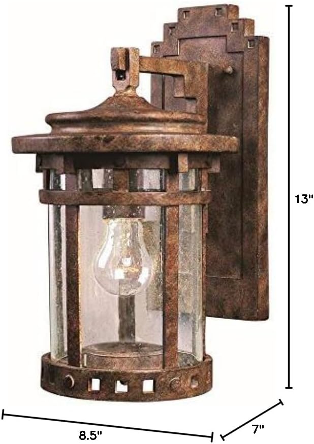 Rustic yet refined, this Santa Barbara DC outdoor wall lantern by Maxim Lighting pairs a weathered Sienna finish with seedy glass for warm, welcoming illumination. Hardwired and UL Listed, it uses one E26 base incandescent bulb and is dimmable to set the perfect ambiance on porches and entryways.