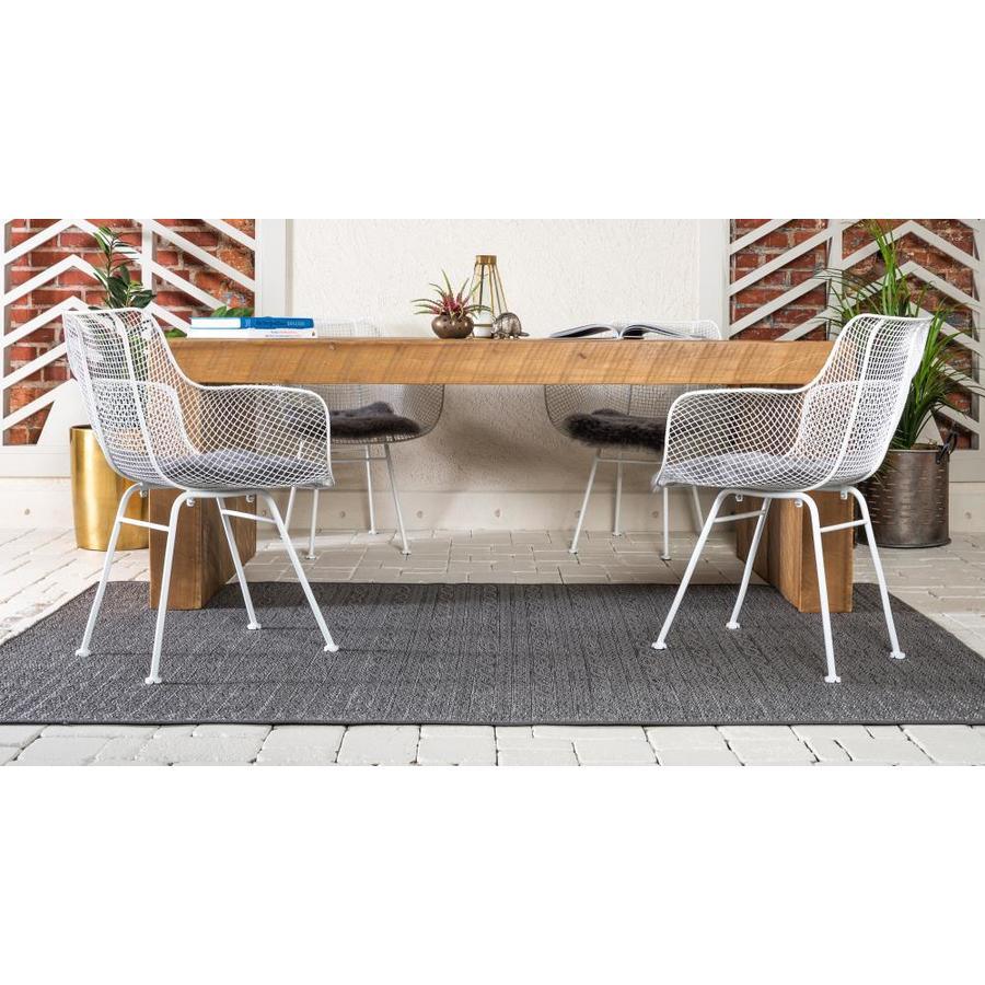 Unique Loom Links Outdoor 7 x 10 Gray/Light Gray Indoor/Outdoor Stripe French Country Area Rug