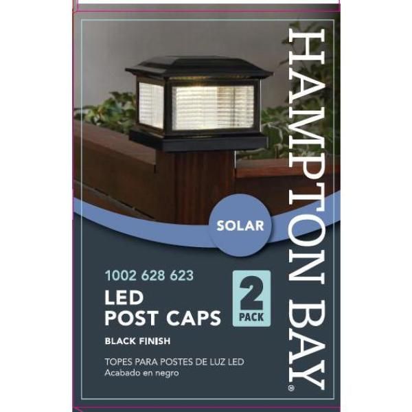 5.5 in. x 5.5 in. Outdoor Black Solar Integrated LED Plastic Post Cap Light with 3.5 in. x 3.5 in. Adaptor (2-Pack)