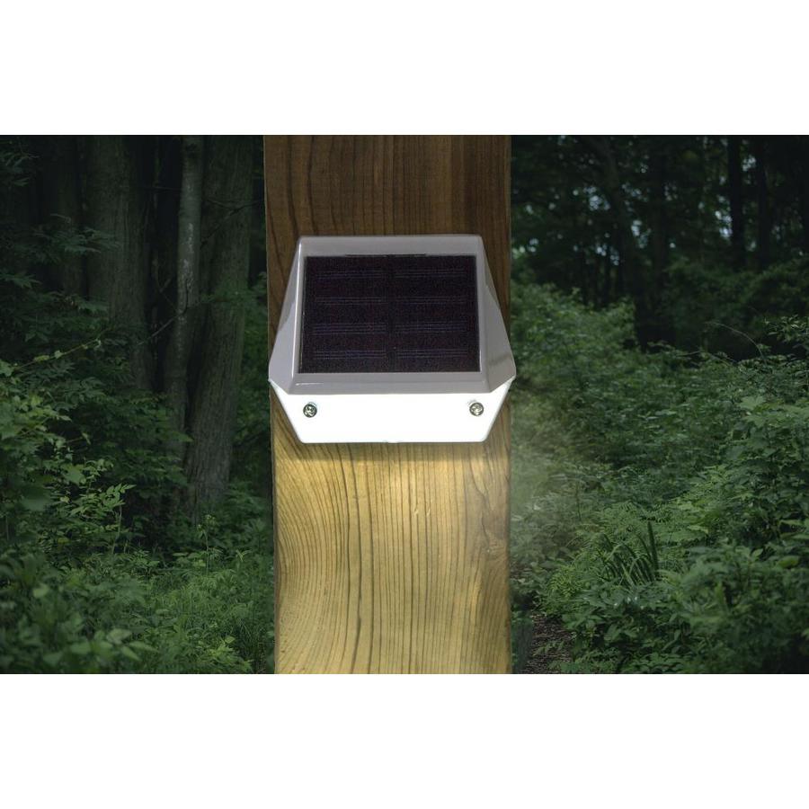 High Performance solar lights – stays lit for up to 12 hours Lights up automatically every night/auto - off switch 2 High output LED’s for brilliant white light 1 long life AA Ni-MH rechargeable battery included Manufactured from durable cast aluminum with powder coated White finish Quick and easy Do It Yourself installation 12 Lumens/4500 – 5500 Kelvin