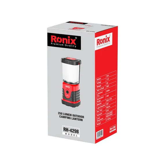 Illuminate your adventures with the Ronix RH-4298 Outdoor Camping Lantern. This versatile, USB rechargeable lantern delivers up to 250 lumens, providing adjustable brightness to suit any situation. Crafted in a retro style, it's perfect for both indoor ambiance and outdoor adventures.