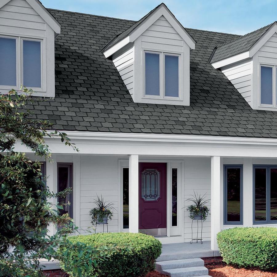 Premium laminated architectural shingles in Manchester Gray from Owens Corning’s Berkshire line. Designed to deliver an elegant slate-inspired look with durable asphalt construction for long-lasting roof performance.