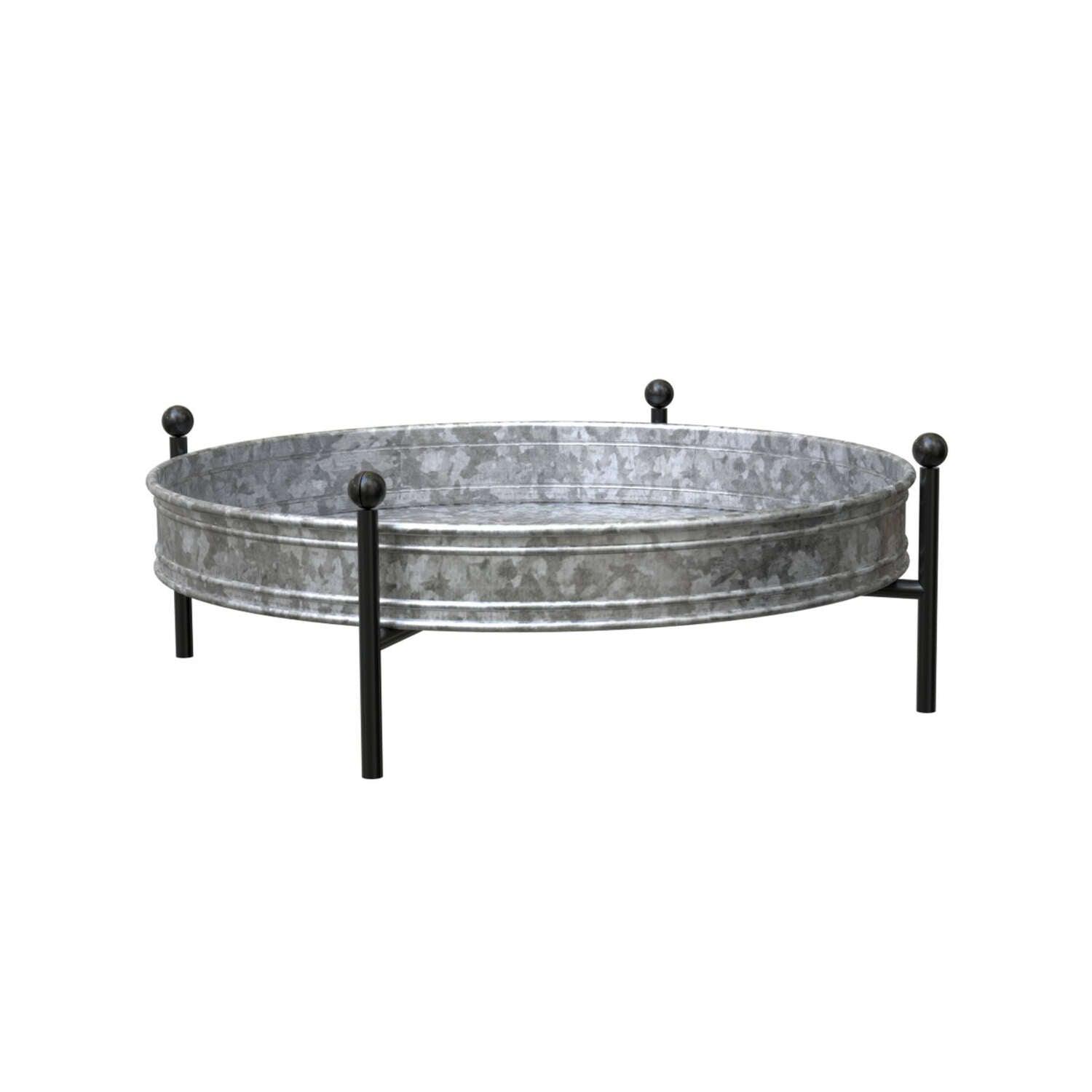 Make your succulent garden the center of attention on your table! This galvanized 16-inch diameter planter sits on top of a decorative, steel wire stand and is generously sized for various succulents, cactus or as a fairy or miniature garden.