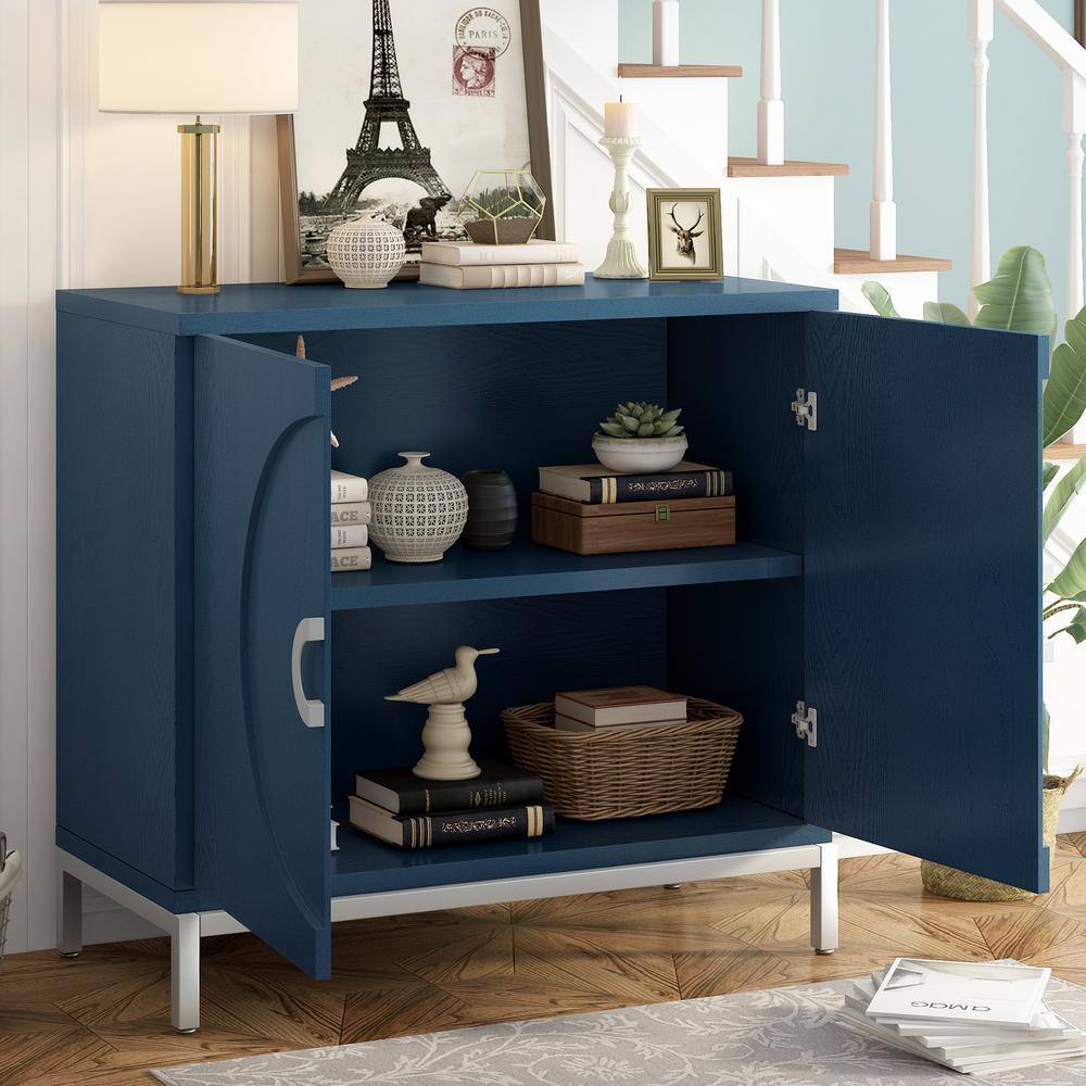 34 in. W x 15.5 in. D x 31.9 in. H in Blue MDF Assemble Upper Pantry Kitchen Cabinet Wood Veneer and Metal Leg Frame