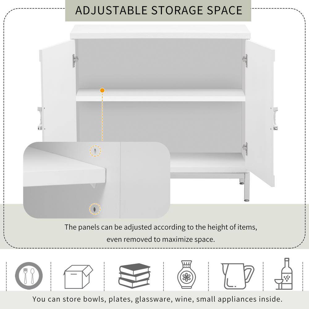 34 in. W x 15.5 in. D x 31.9 in. H in White MDF Assemble Upper Pantry Kitchen Cabinet with Wood Veneer Metal Leg Frame
