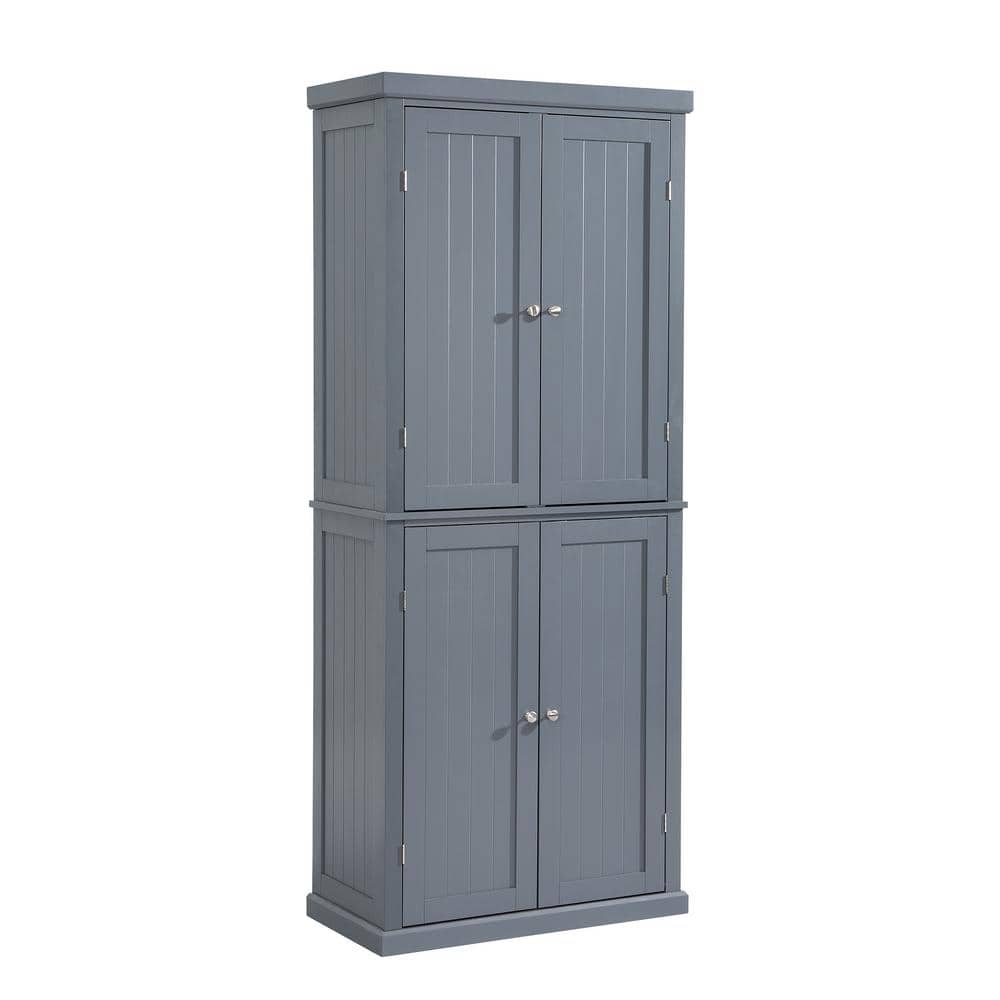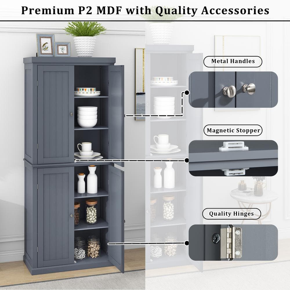 Adrinfly 30 in. W x 14 in. D x 72.4 in. H in Gray MDF Ready to Assemble Kitchen Cabinet Pantry with 4-Doors & Adjustable Shelves
