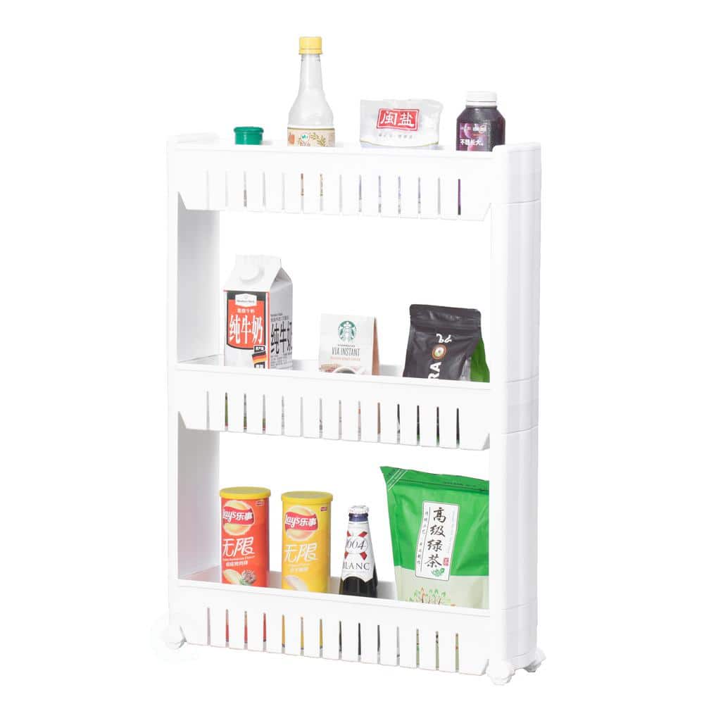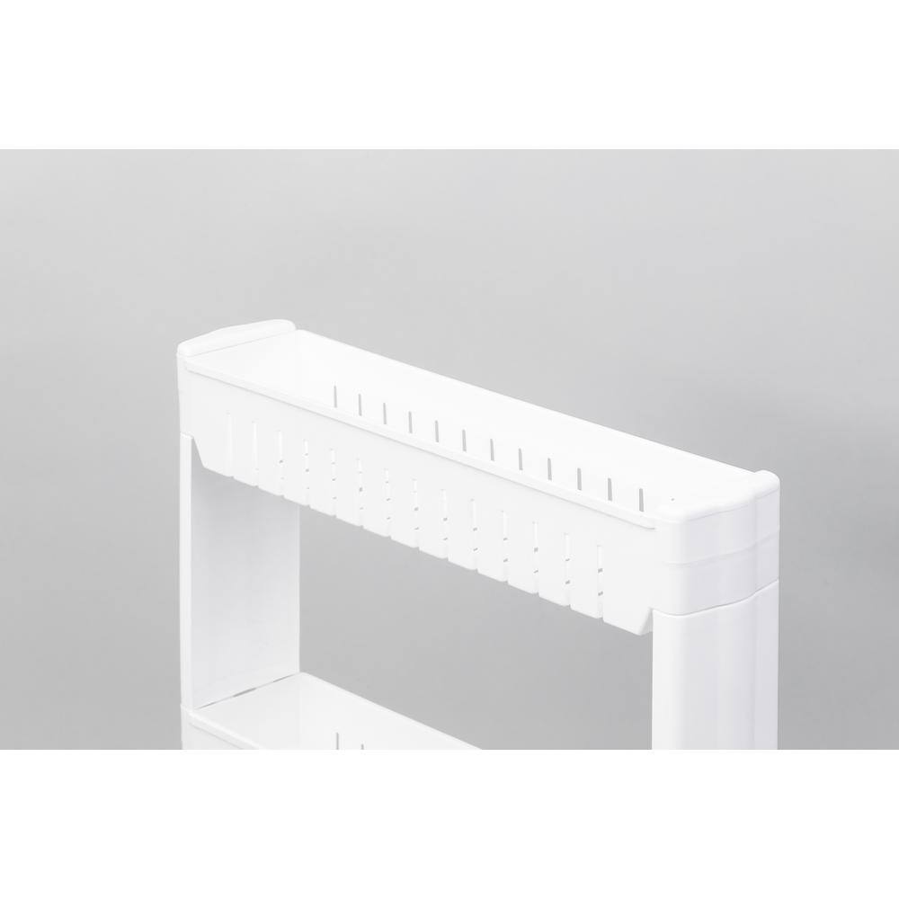 Basicwise Ready to Assemble 5 in. x 21 in. x 28.25 in. Plastic Pantry Storage Kitchen Cabinet 3-Shelf Cart Rack Tower Wheels White