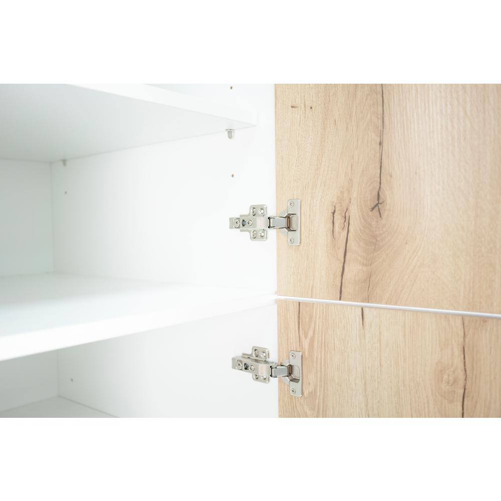 • Modern Design: Frameless, with 3/4 in. slab doors and drawer faces, crafted from MDF with a light oak laminate finish.