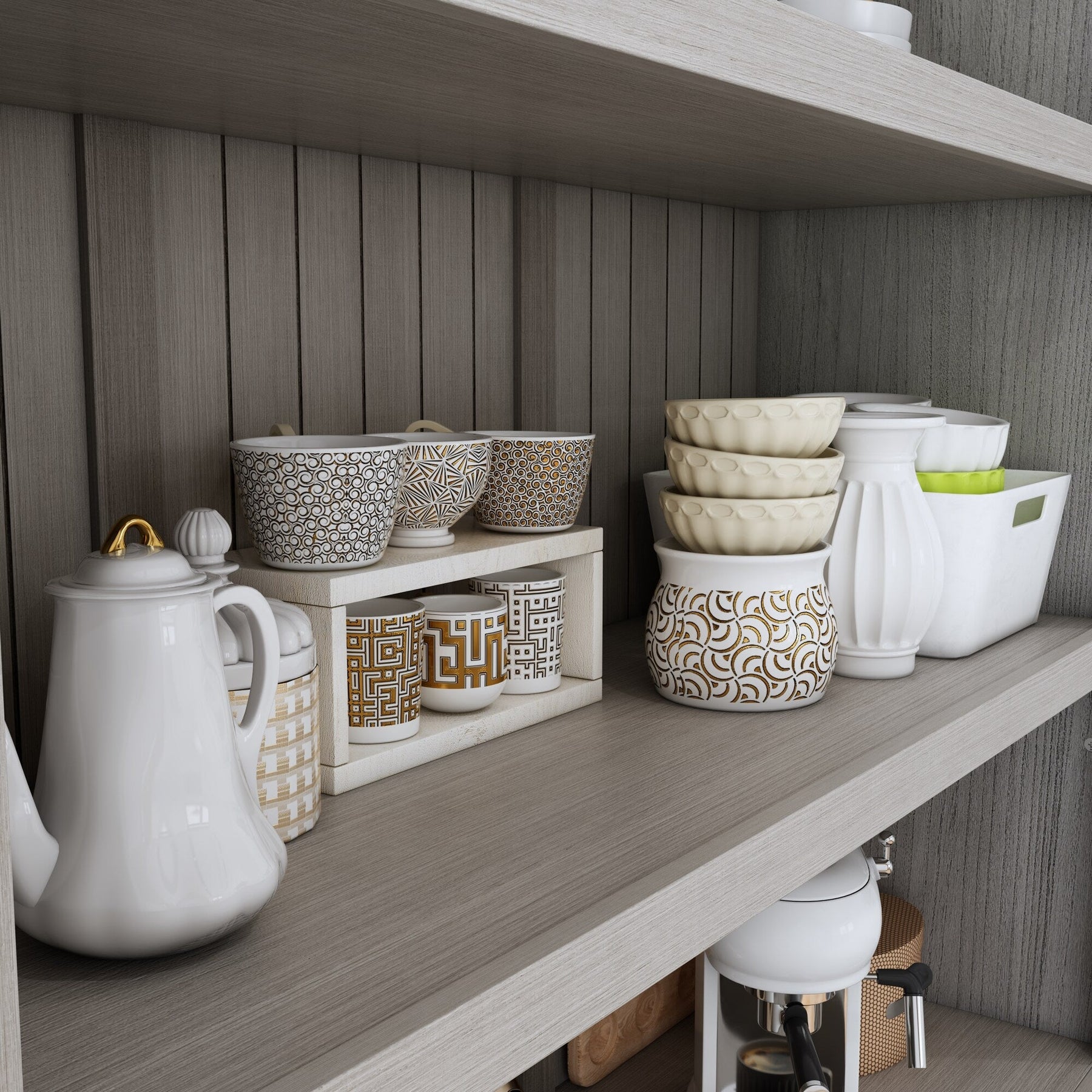 A: Yes, the cabinet is built to support a wide range of kitchen items including bowls, plates, and containers, with reinforced shelves and drawers for stability.
