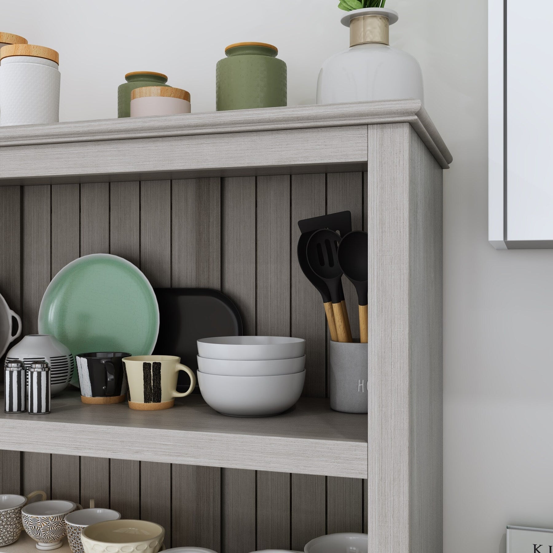 Rustic Gray Kitchen Pantry Cabinet with Shelves and Drawers