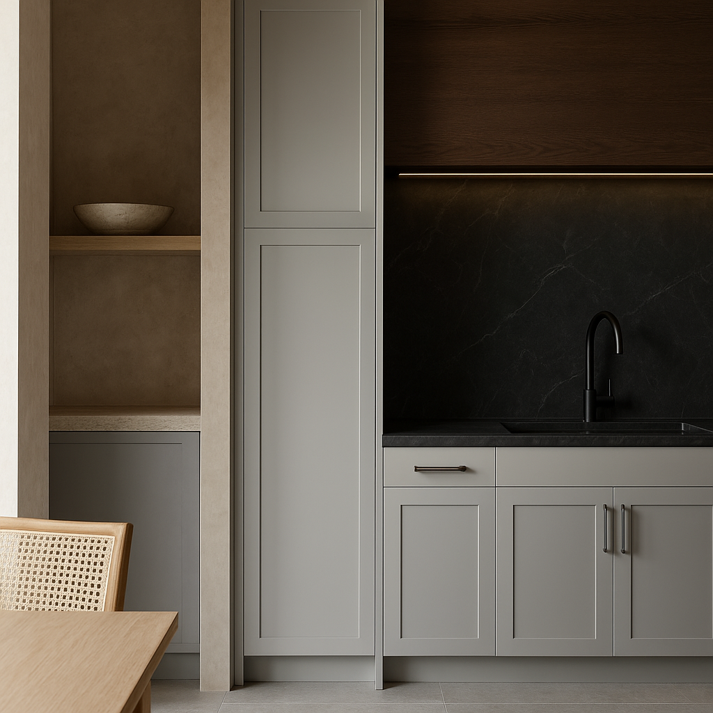 The Hampton Bay Avondale Shaker Pantry Cabinet in Dove Gray combines traditional shaker styling with modern functionality. Featuring durable plywood construction, soft close doors, and adjustable shelves, this cabinet is designed for quick assembly and long-lasting use.