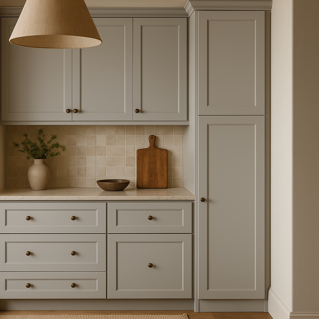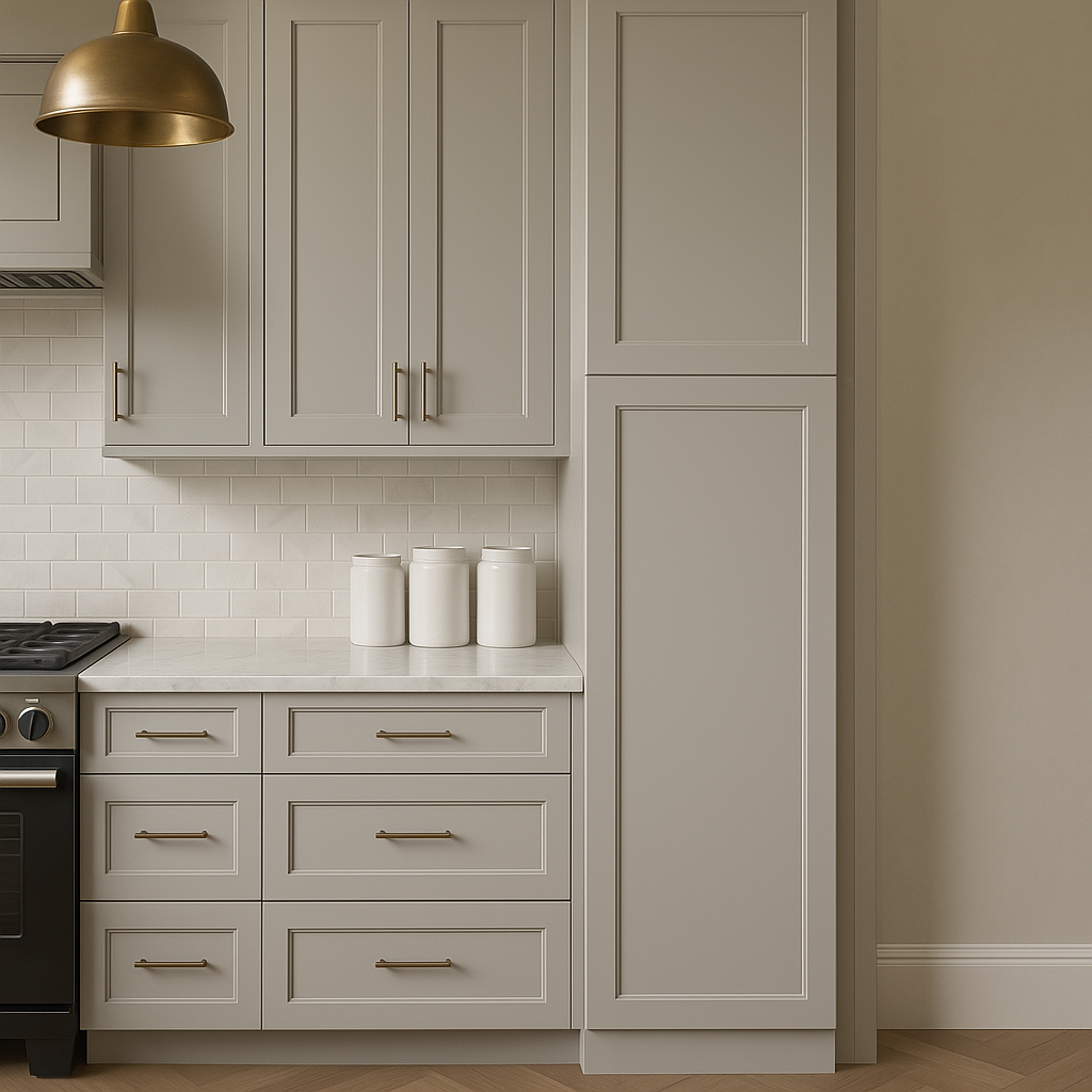 Upgrade your kitchen with the Hampton Bay Avondale Shaker Pantry Cabinet in Dove Gray today!