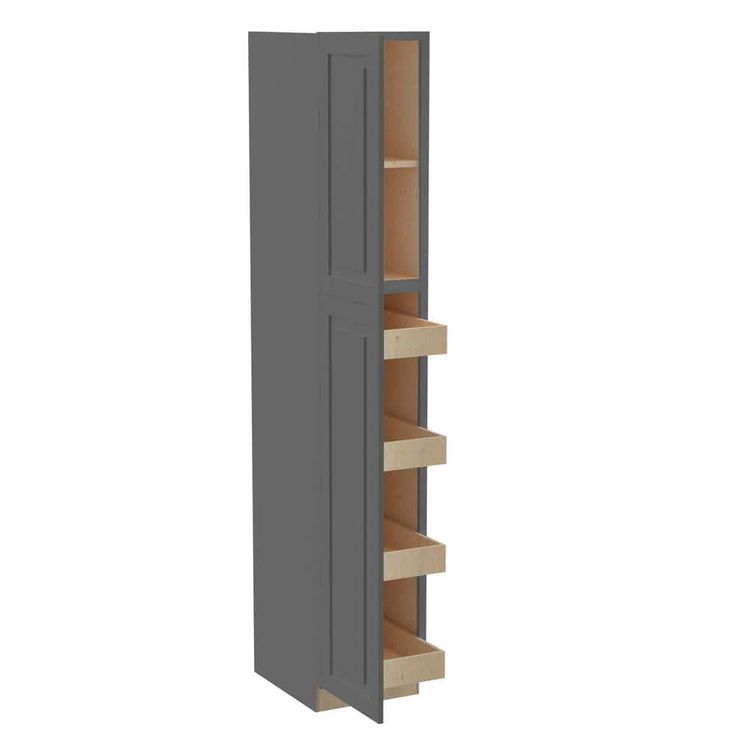 Elevate your kitchen design with the Grayson 96" Pantry Cabinet in an elegant Deep Onyx finish. This ready-to-install cabinet from Home Decorators Collection offers a sophisticated Shaker style with a modern twist, featuring soft-close doors and full-depth shelving for maximum storage. Crafted from premium plywood, it combines durability with sleek aesthetics for any modern or transitional kitchen.