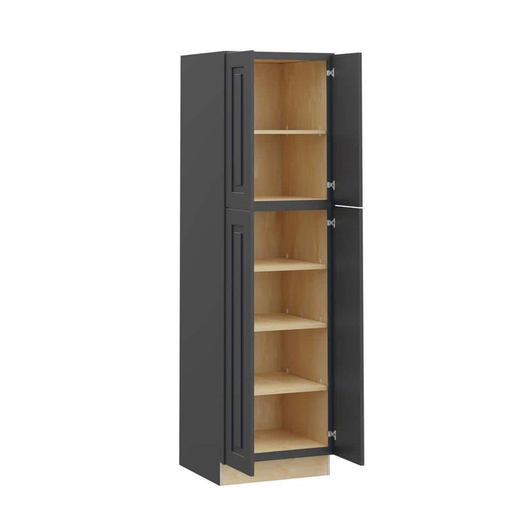 The Grayson Deep Onyx Pantry Cabinet from Home Decorators Collection combines modern elegance with practical storage solutions. Designed with transitional shaker doors and a rich deep onyx finish, this cabinet offers both style and utility with full-depth adjustable shelves and soft-close features.