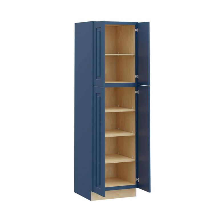 Enhance your kitchen’s elegance with the Grayson Plywood Pantry Cabinet in Mythic Blue from Home Decorators Collection. This 90-inch tall pantry cabinet features a stylish square raised panel design, crafted for durability with high-quality plywood and a stunning dark blue finish. Enjoy the convenience of soft-close doors and adjustable shelves providing ample storage without compromising on design.