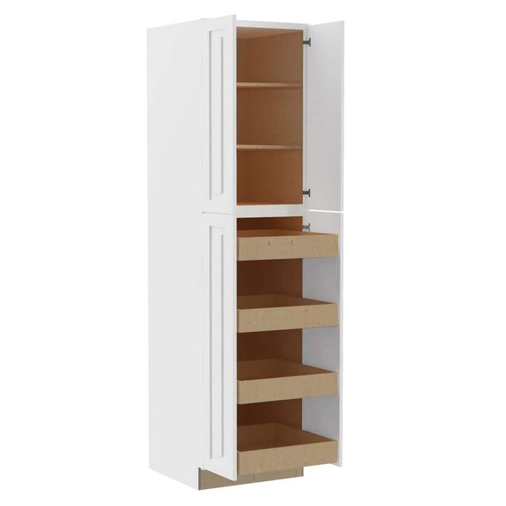 The Home Decorators Collection Grayson Pantry Kitchen Cabinet in Pacific White offers exceptional storage solutions with its transitional design and soft closing features. Constructed with durable plywood and modern styling, this pre-assembled cabinet is perfect for creating a bright, breezy kitchen aesthetic.