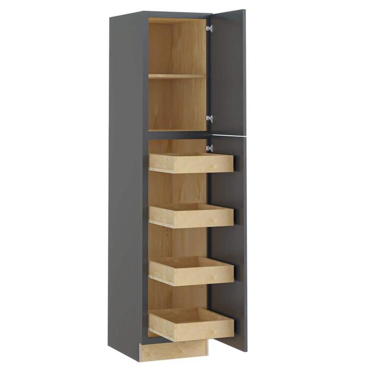 A: The roll-out trays make accessing stored items easier and help maximize the storage potential of the cabinet.