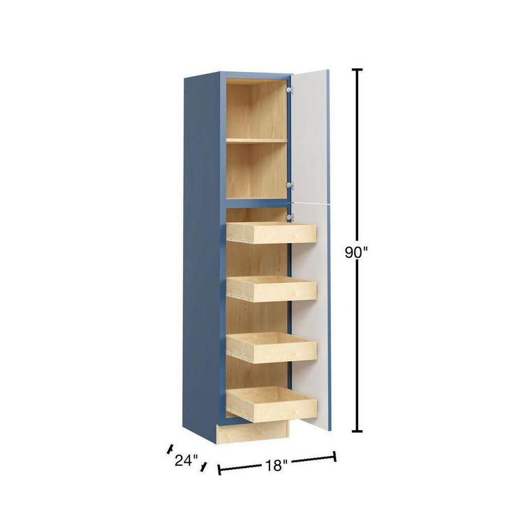 Home Decorators Collection Washington Vessel Blue Plywood Shaker Assembled Utility Pantry Kitchen Cabinet 4 ROT Sf Cl R 18 in W x 24 in D x 90 in H