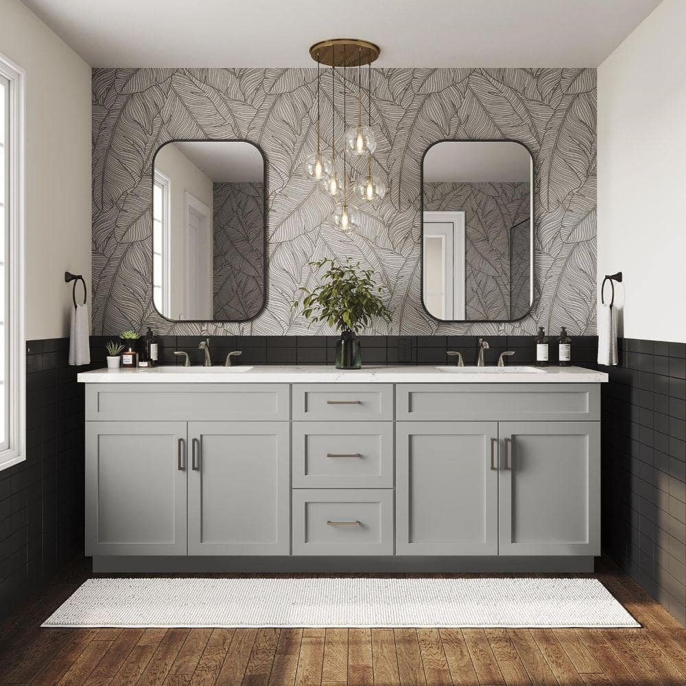 • Effortless Style: Full overlay, Shaker door style in a premium stone gray finish adds a modern touch.