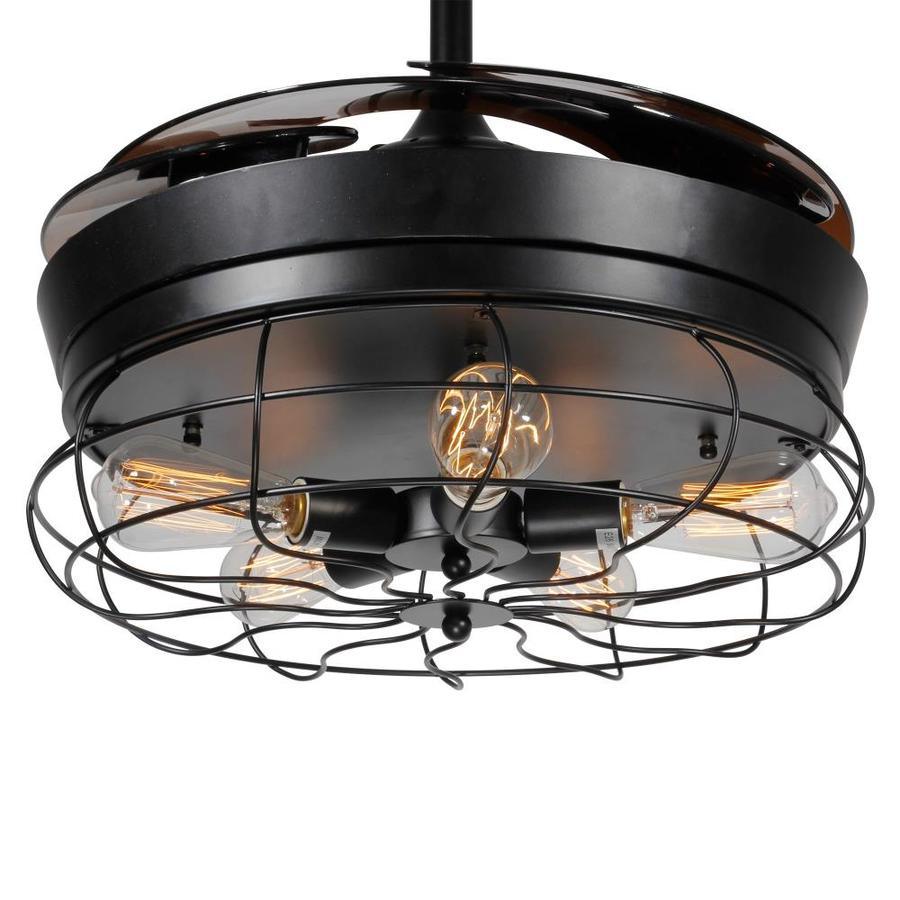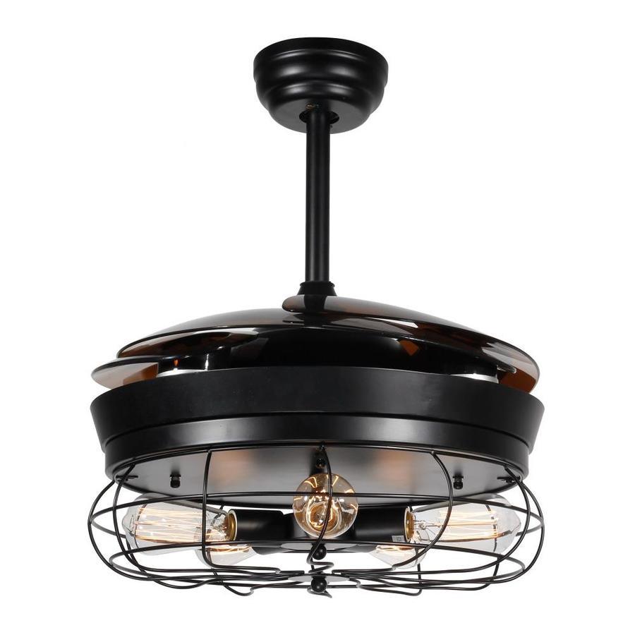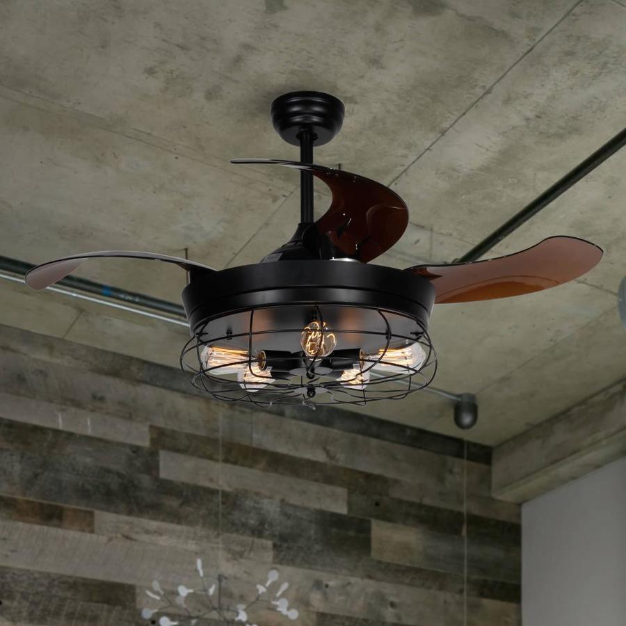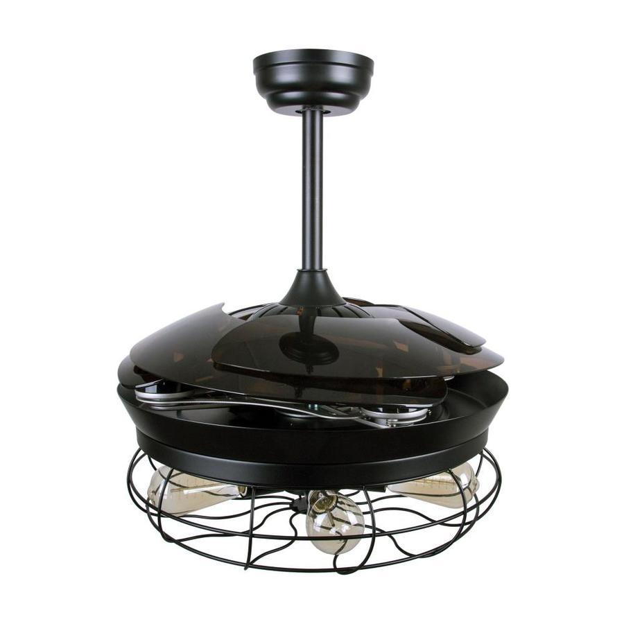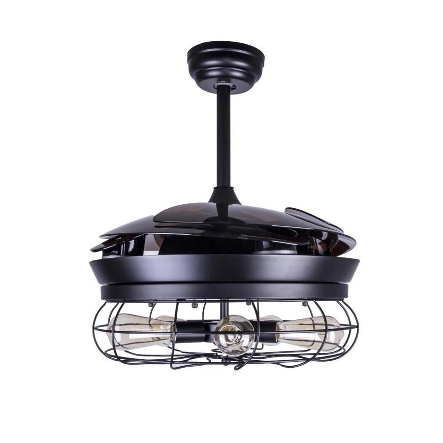 Industrial ceiling fan: retractable 3 blades ceiling fan and industrial chandelier 2 In. 1, fits perfectly in any rustic/industrial-style environment Whisper-quiet motor quietly generates optimal airflow using 3-speeds feature providing year-round comfort 200-Watt light fixture using five 40-watt candelabra base (E-26) incandescent bulbs(not included) Remote control included- this high-end remote control allows you to control the light and the fan speed separately and from anywhere in the room Retractable blades- blades open and closed by remote control, when closed, it is a beautiful 19-inch crystal chandelier, when open, it is a 46-inch ceiling fan 46-In fan provides airflow up to 3600-CFM, making it ideal for small room 4-In and 10-In L down rod included (can also be installed as max 15 degrees angle mount) Offering a limited lifetime motor warranty on all ceiling fans; with a 1-year warranty on all parts (excluding bulbs)